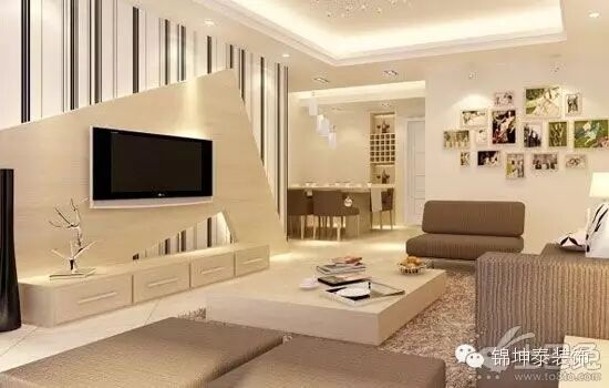 沙發位置確定后,確定電視機的位置,再由電視機的大小確定背景墻的大小和造型。