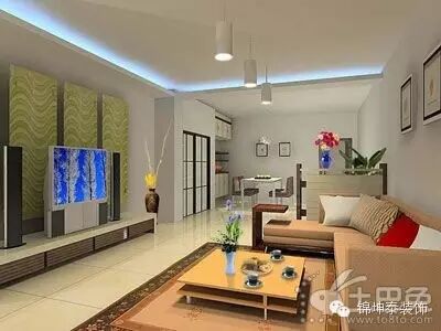 客廳的裝修是一體的,電視背景墻的裝修要考慮吊頂的存在。或許你會覺得在電視背景墻上安裝射燈,會很炫,但這樣的做法是不對的。雖然很有個性,長時間下來,會造成人的視覺疲勞,也會對人的健康不利。所以只要考慮電視背景墻的造型與吊頂燈飾顏色相呼應。
