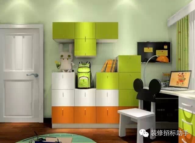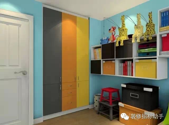 這個俄羅斯方塊的吊柜,實現了封閉收納和開放擺件的功能。常用的書本、衣物、玩具可以置放在底下矮柜,其他放置在高吊柜的也可以讓孩子叫父母幫忙拿取到。
