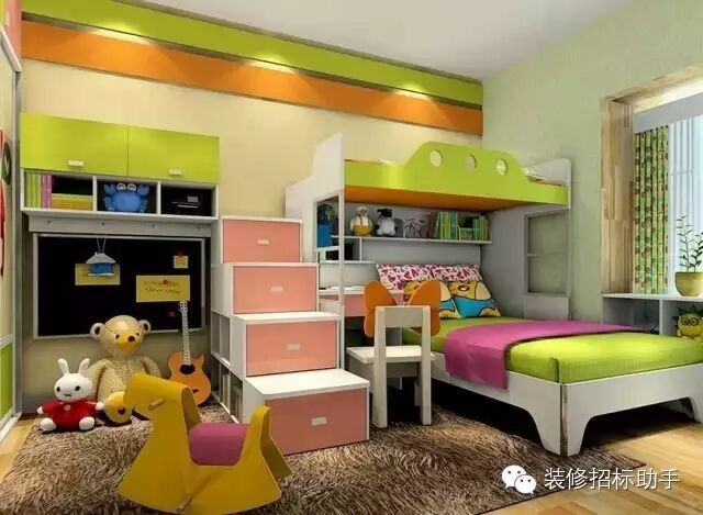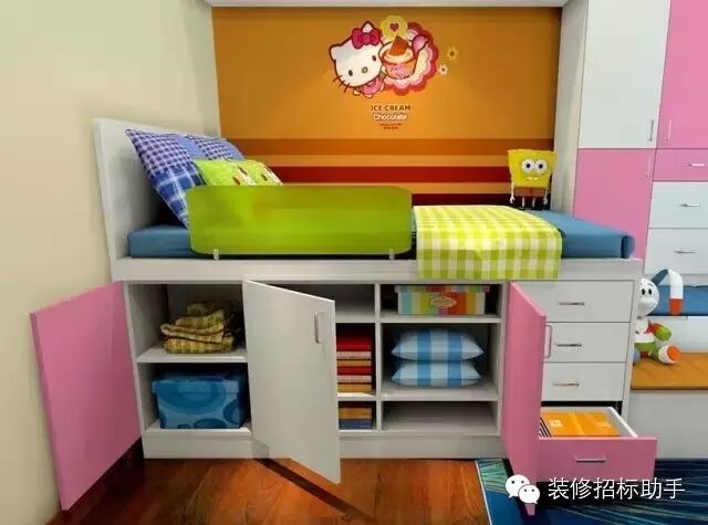 孩子要健康成長,給他們一個活動空間是很必要的。這時候就可以利用高架床或者小閣樓的方式,為底下留出空地給他們玩耍。
