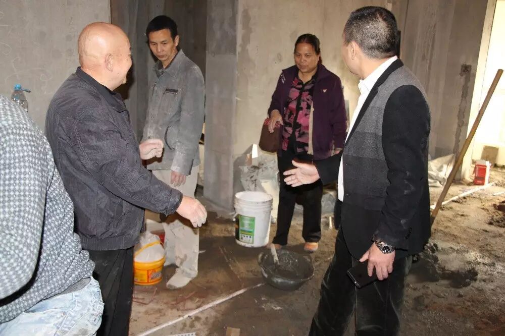 工地工長向業主與公司總裁匯報工地裝修進展。
